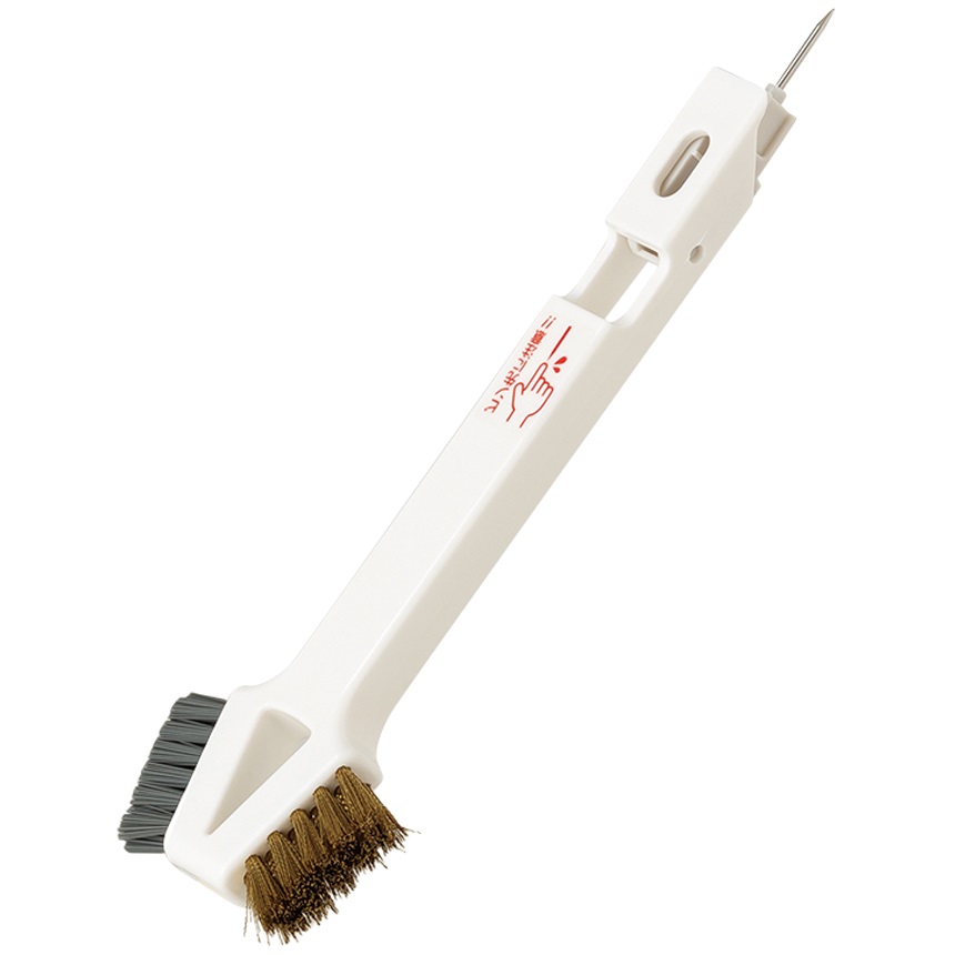 ガスレンジのお手入れに便利な、4つのアイテムが1本に!ピンは収納式です。 ヘラ:五徳の汚れ取りに。 ピン:ガス穴のつまりに。 ハードブラシ:コゲつき・サビつきなどのガンコな汚れに。 ソフトブラシ:しる受けの油汚れに。 --------------------------- 【関連ワード】 掃除用品 キッチンブラシ --------------------------- --------------------------------------------------------- メーカーリニューアルに伴い、 パッケージ・内容等予告なく変更する場合がございます。 予めご了承ください。 --------------------------------------------------------- |