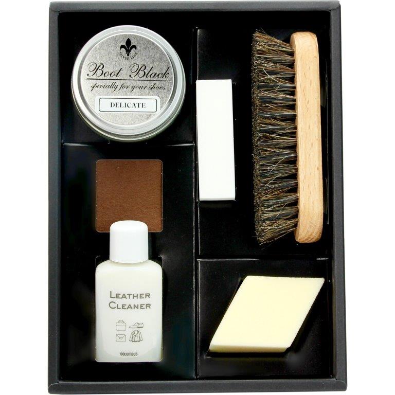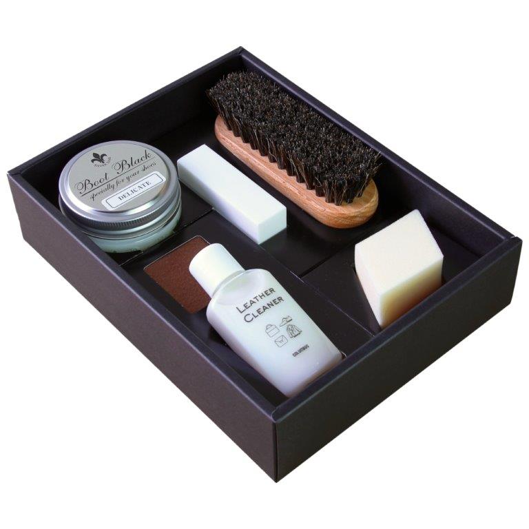 ●セット内容:ブートブラックシルバーライン デリケートクリーム ニュートラル(55g)×1、レザークリーナー(30mL)×1、クリーナー(消しゴムタイプ)×1、馬毛ブラシ×1、クリーム塗布用パフ×1、グローブクロス×1、クロス×1 |