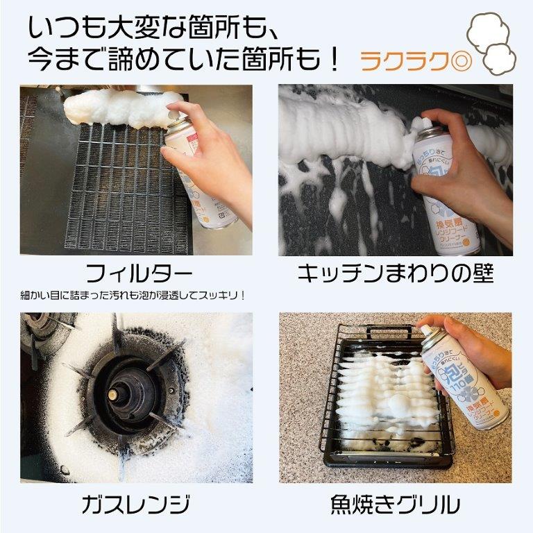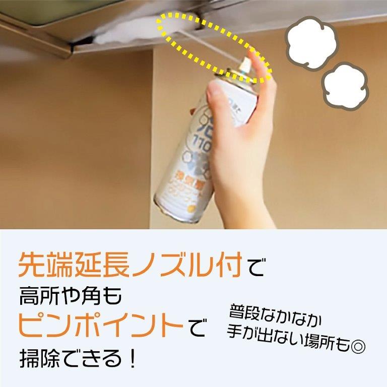 消えにくいモコモコの泡が汚れに密着!浮かせて落とします。 先端延長ノズルが付いており、隙間に詰まった汚れにもピンポイントで噴射できます。 人や物にやさしい弱アルカリ性!オレンジオイルも配合しています。 洗浄剤が2種類配合、2つのパワーで油汚れにアタック! 女性の手でも持ちやすいコンパクトサイズで使いやすい! 先端延長ノズル長さ(約):11.5cm 液性:弱アルカリ性 使用量の目安:1㎡当たり約20秒噴射 ※火気と高温に注意してご使用ください。 |