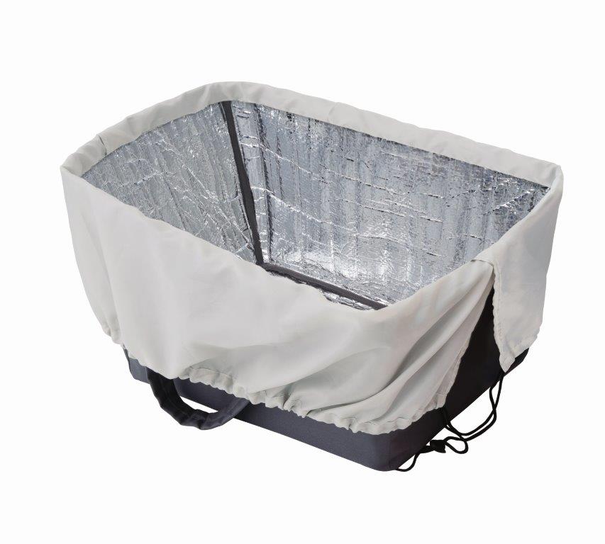 原材料:表地:ポリエステル、蓋:ポリエステル 裏地:アルミ蒸着シート(表面蒸着部分:アルミ二ウム、スポンジ部分:ポリエチレン樹脂) 製造国:中国 個装サイズ(cm)・重量(g):縦5奥行25横39重量307 発売元:株式会社メイダイ |