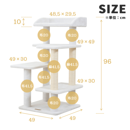 ジャンプの苦手なシニア猫ちゃんや短足猫ちゃんにおすすめの据え置きタワー。 広々ステップと上りやすい高さがGOOD! 【台座サイズ】49×49cm 【最大所要サイズ】幅:約65cm×奥行:約56cm×高さ:96cm、約13kg ※ご使用のモニター、ブラウザ、照明などの環境によりお色が変わりますので予めご了承ください。 使用頭数目安;2匹まで --------------------------- 【関連ワード】 キャットタワー --------------------------- |