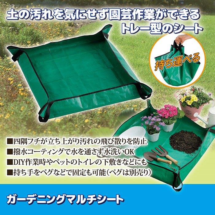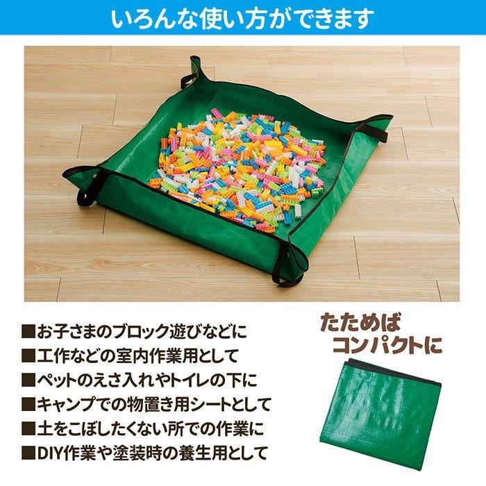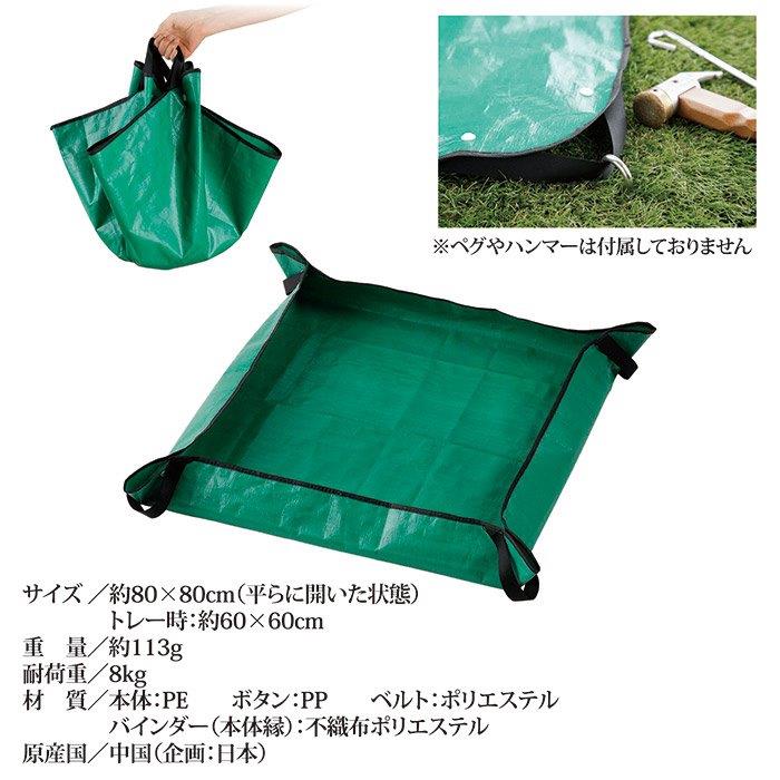 四隅フチが立ち上がり汚れの飛び散りを防止 撥水コーティングで水を通さず水洗いOK DIY作業時やペットのトイレの下敷きなどにも 持ち手をペグなどで固定も可能(ペグは別売り) ガーデニングでの鉢の植え替えなどの作業で、どうしてもこぼしてしまう土類をしっかりと受け止めるトレー型のシートです。 シートの四隅にあるボタンを止めるだけでトレーになり、土などをこぼすことが防げます。 シートは撥水加工済みですので、水を通さず水洗いも可能です。 場所を気にすることなく使えるシートなので、ベランダや室内での植え替え、土混ぜなどの作業の用として大変役に立ちます。 四隅には持ち手になるベルトが付いていて、風が強い日などはベルトを利用してペグなどで地面に固定することも可能です。 ガーデニングだけでなく、DIY作業時の床保護やトレーになっているので部品の紛失防止用として。 また、ペットのエサ入れやペットのトイレの下に敷くなどもオススメです。 四隅のホックを外せば、レジャーシートとしても利用できます。 トレーシートは小さく折り畳んで収納できます。 ※屋外での使用後は水洗いをおススメします。とくにボタン部分の砂ぼこり等は取り除いてから保管ください。 |