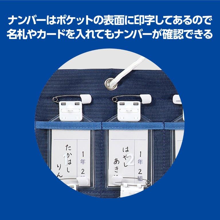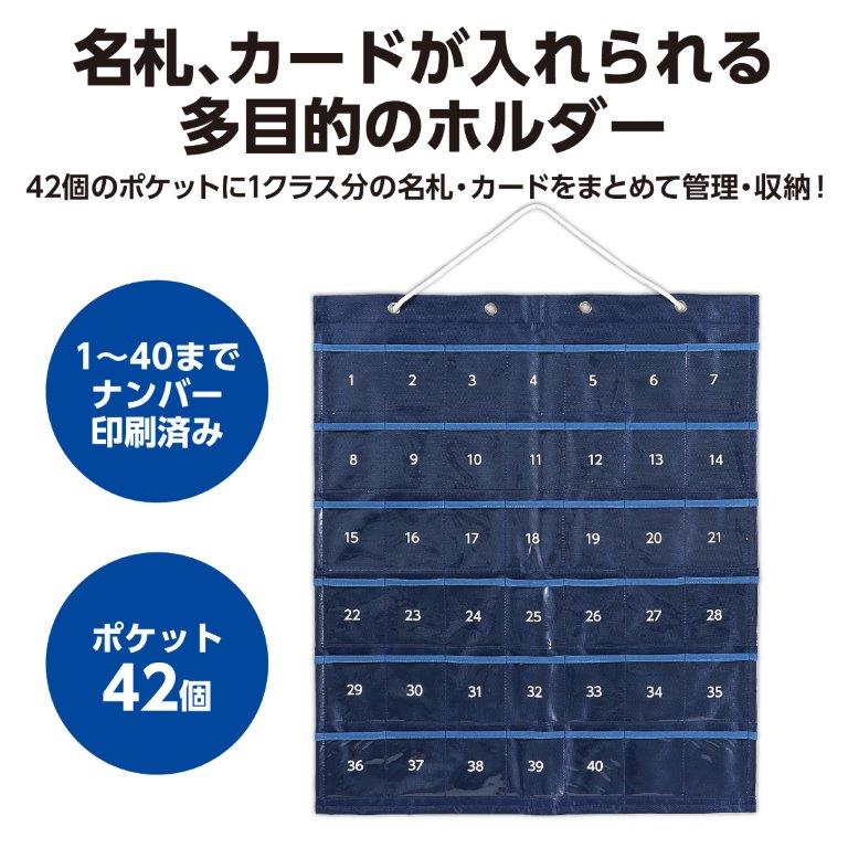 42個のポケットに1クラス分の名札・カードをまとめて管理・収納! ポケットの表面に数字が印字されているのでカード等を入れてもそのまま確認できます。 |