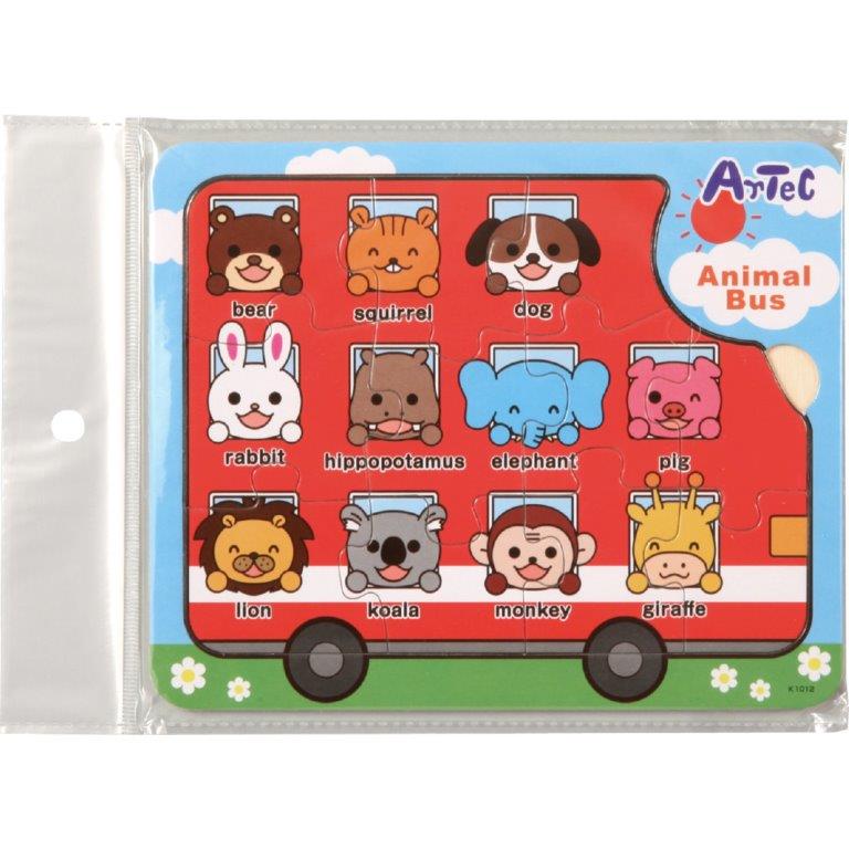 バスに乗ったかわいい動物の木製パズル! かわいい動物の木製パズル! |