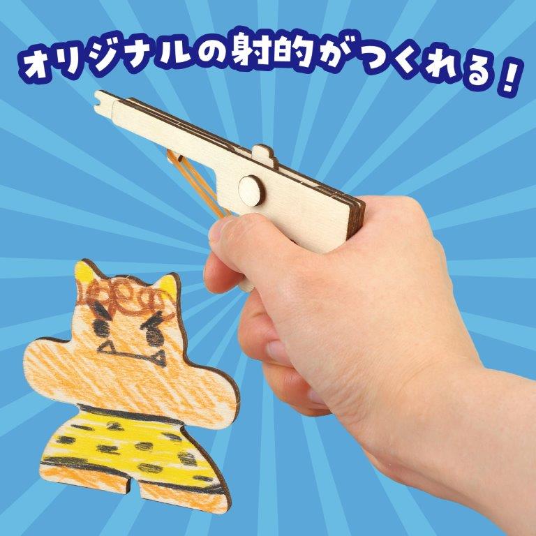 自分で絵をかいてオリジナルの射的ゲームをくつろう! 無着色の木製射的ゲームです。 色を塗ったり絵を描いたりして、自分だけの射的ゲームを作ることができます。 てっぽうと的がセットになっており、完成後すぐに遊べます。 親子での工作やイベントでのレクリエーションにおすすめです。 使用可能画材:色鉛筆、クレヨン、油性ペン、水性ペン |