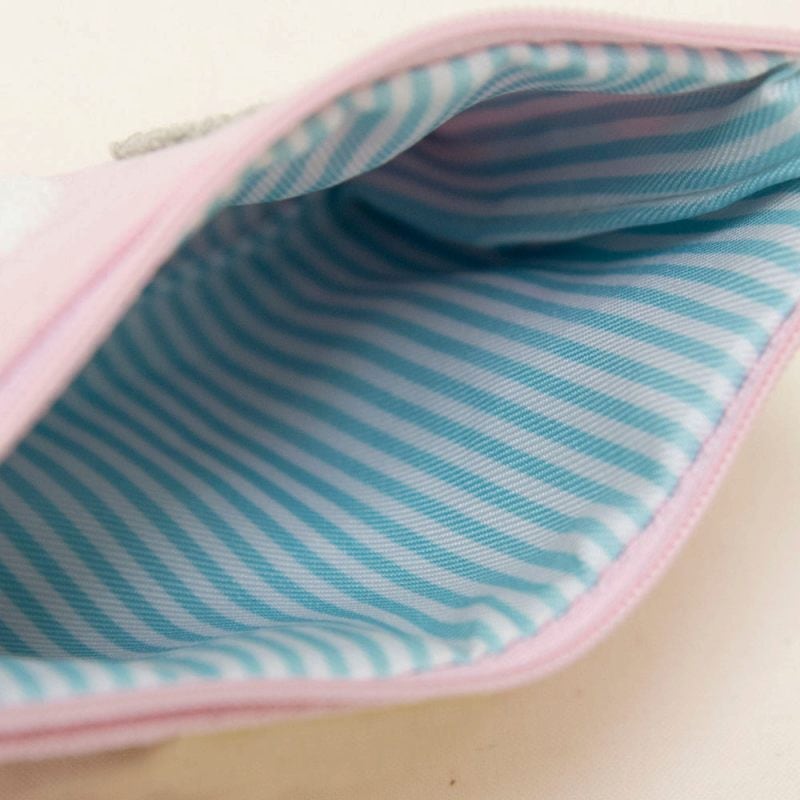 サガラ刺繍のワンポイントが可愛いティッシュポーチ。 仕切りがあり、ティッシュ入れとファスナー小物入れは別室になっています。 |