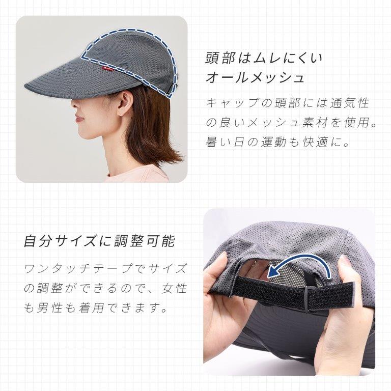 大きいツバで日差しをしっかりガード! 風通しのよいウォーキングキャップ。 帽子内側の肌にあたる部分に吸水・速乾性に優れた生地を使用しており、ウォーキング中もサラッと快適に。 頭部はオールメッシュでムレにくく、立体的な形状で頭にフィットします。 ワンタッチテープでサイズ調整可能。 あご紐付のワイドなツバ広タイプ。 ■適応サイズ:頭囲/54~60cm ■ツバの長さ:(約)13cm ■UVカット率:99%以上(ツバ部) ■紫外線保護指数:UPF50+ |