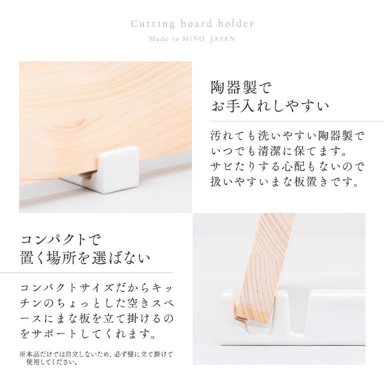 美濃焼のまな板・カッティングボード置き。 菜箸やお玉などのキッチンツール置きにも。 やさしい風合いの陶器製で、汚れても洗いやすく清潔に保てます。 ※本品だけでは自立しないため、必ず壁に立て掛けて使用してください。 |