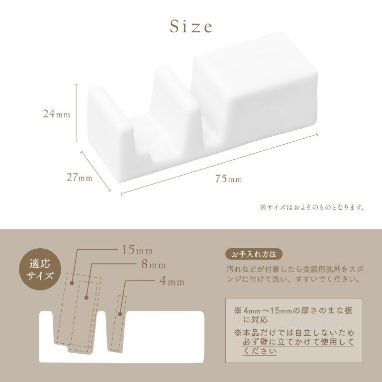 ■商品サイズ:(約)2.4×2.7×7.5cm ■適応サイズ:4mm~15mmの厚さのまな板 |