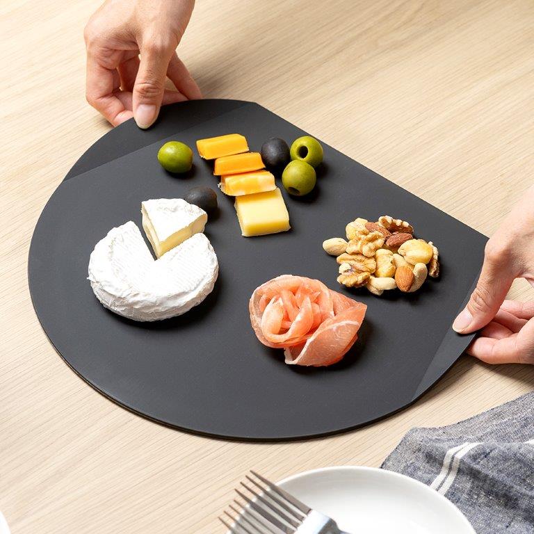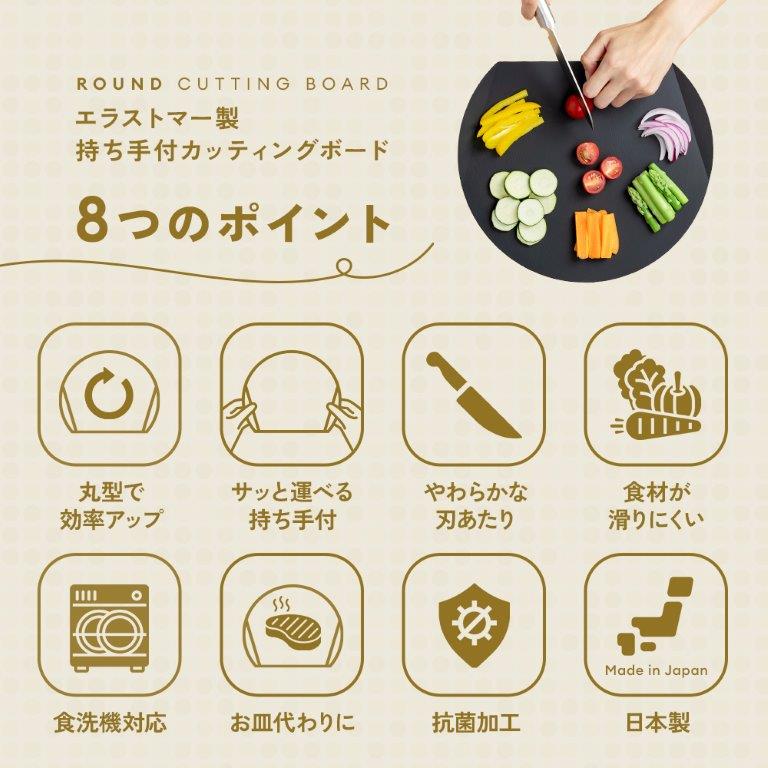 人気の丸いまな板が持ち手付きに進化! 刃あたりが柔らかく食材がすべりにくい、耐熱エラストマー素材。 カットしてそのまま食卓へ持ち運べるので、料理を盛り付けてお皿がわりにも使えます。 熱湯消毒・食洗機使用OK。 ■耐熱温度:130℃ ■耐冷温度:-30℃ |