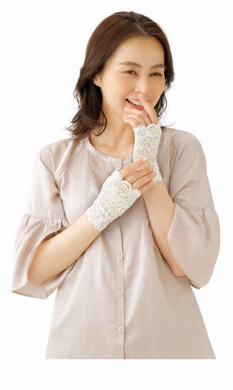 サイズ(約)/縦14.7×横12.5×高さ0.3cm(1枚) 適応サイズ(約)/手囲い:17~22cm 重量(約)/7g(1枚) 見られたくない手のシワ・シミ・血管の浮きを、レースでカバーして、若々しいイメージに。 甲部分裏側は、当て布(綿混素材)付きの2重構造。 肌触りなめらか、ムレにくい。 レースなのにUVカット率96%!(甲部分:ブラック、ホワイト共通)夏場の紫外線対策にも。 冬場、手袋の下に着ければ、外した時も手元はきれい!カサついた手も隠せる。 指先が使えて便利。スマホ操作も邪魔しない。 フォーマルシーンにも大活躍。手元の演出でエレガンスをプラス。 付け袖感覚でそで口のオシャレに! ※手洗い可(弱く絞ってください)(裏返してのお洗濯をおすすめします) --------------------------- 【関連ワード】 手袋 --------------------------- |