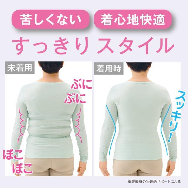 サイズ(約)/縦50×横27×高さ5cm 適応サイズ(約)/バスト 79~94cm 重量(約)/100g 着ている間、姿勢と骨盤をケアするソフトな着心地のサポートインナー。 ブラジャー+キャミソール+補整下着がこれ一枚で。 砂時計型シルエットが着用時の体のラインを滑らかに整えます。 段差が出にくい脇高設計でシルエットスッキリ。 全方向360°やさしく包み込んで苦しくない。 後下がりのロング丈でお尻まですっぽり。 伸縮性抜群、蒸れにくく吸水速乾性に優れた特殊繊維使用。 洗濯機可(洗濯ネット使用)(あて布使用) --------------------------- 【関連ワード】 補整下着 キャミソール 脇高設計 --------------------------- |