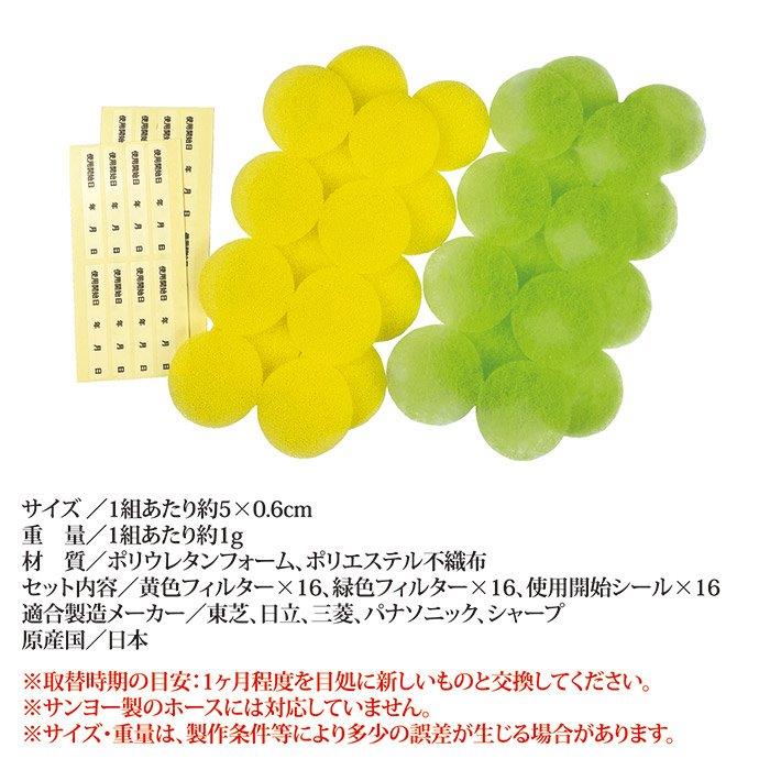 黄色フィルター×16、緑色フィルター×16、使用開始シール×16 |