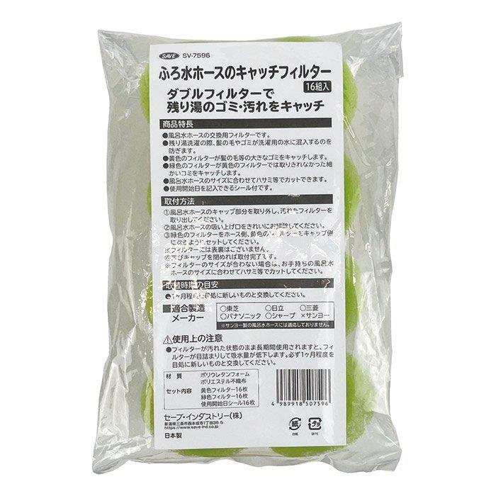 風呂水ホース専用の交換用フィルターです 残り湯洗濯の時に髪の毛やゴミが洗濯機に入るのを防ぎます 定期的に取替えができるタップリ16組入 洗濯機で洗濯する時に、風呂の残り湯から吸水して使用できる機能が備わっている洗濯機。 残り湯を使用することで水道料金の節約になるので、使用している方は多いようです。 しかし、風呂の残り湯には「髪の毛」「皮脂」「ゴミ」など、洗濯物と一緒にしたくないモノがどうしても残っています。 これを洗濯機に入れないようにするキャッチフィルターのご使用をオススメします。 風呂水ホースの先端部分は開閉できますので、その中にこのフィルターをセットしてください。 ダブルフィルターになってますので、大きなゴミから小さなゴミまでキャッチします。 16組のセットになってますのでたっぷりご使用いただけ、使用開始日を記入できるシールも付属してます。 ※取替時期の目安:1ヶ月程度を目処に新しいものと交換してください。 ※サンヨー製のホースには対応していません。 ※サイズ・重量は、製作条件等により多少の誤差が生じる場合があります。 --------------------------- 【関連ワード】 洗濯 ダブルフィルター 残り湯 --------------------------- |