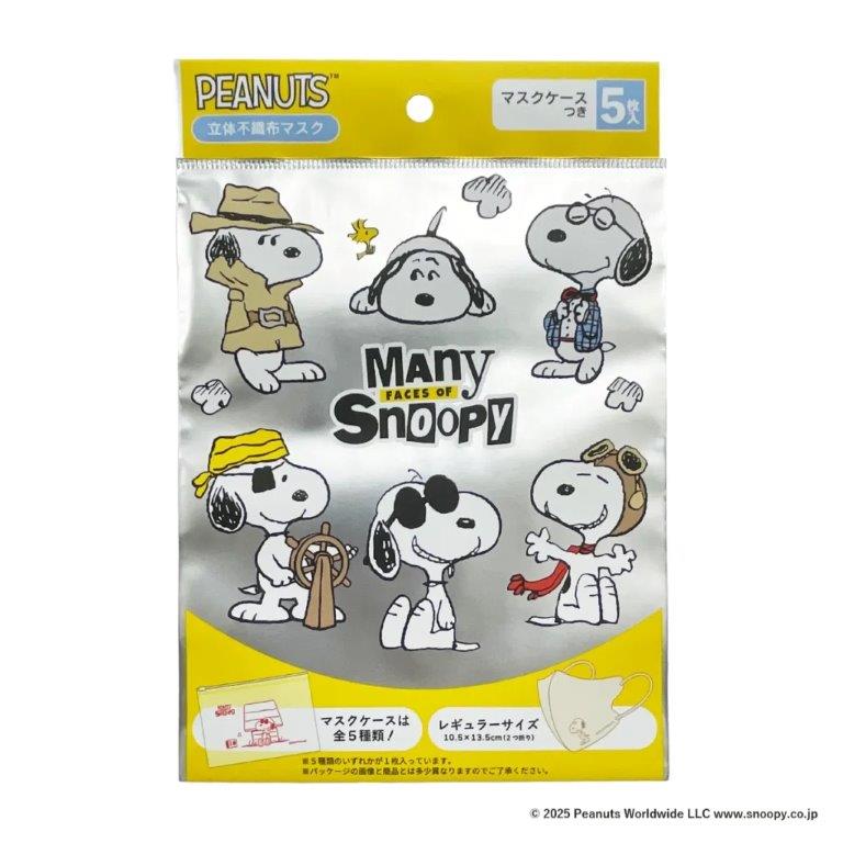 大人用 スヌーピー(メニーフェイシーズ) 3D不織布マスク 5枚入り +ポーチ付き A019