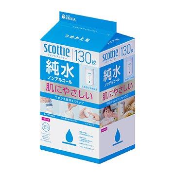 スコッティ ウェットティシュー 純水 ノンアルコール 130枚 つめかえ用