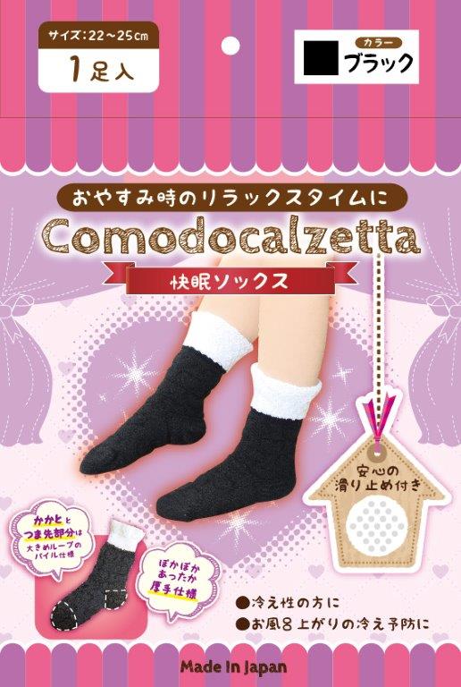 コモドカルツェッタ 快眠ソックス ブラック 1足入