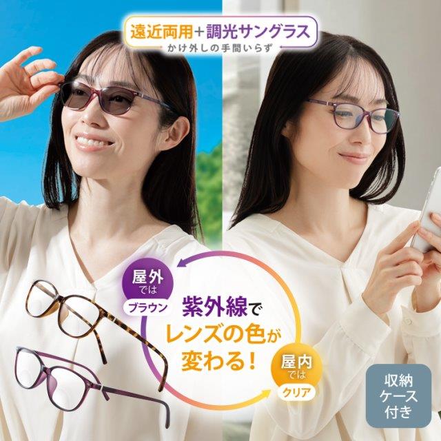 UVカット遠近調光グラス べっ甲柄 +2.0