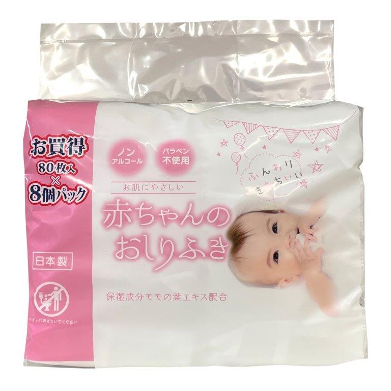 赤ちゃんのおしりふき(ピンク) 80枚×8個パック